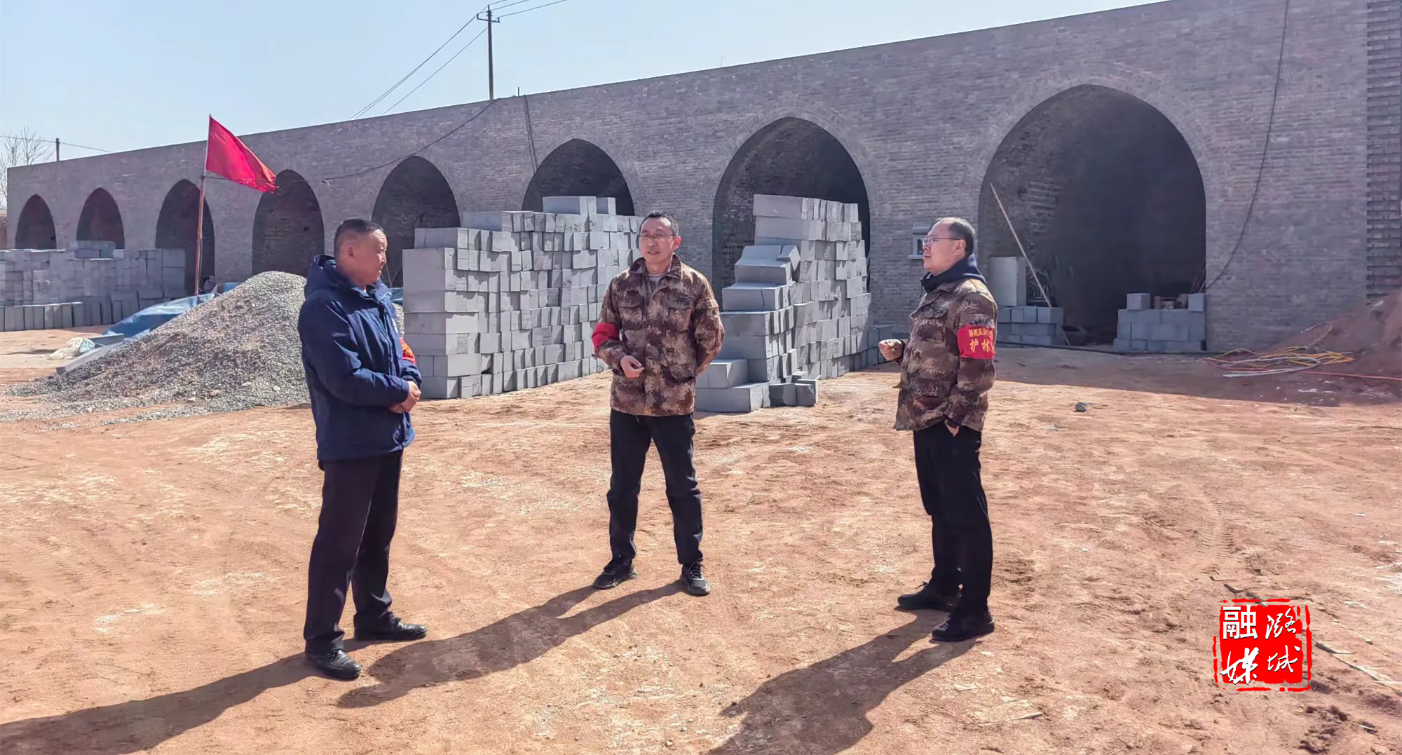 ★3月31日,成家川街道工作人员在王家村查看文旅康养中心项目进展情况。