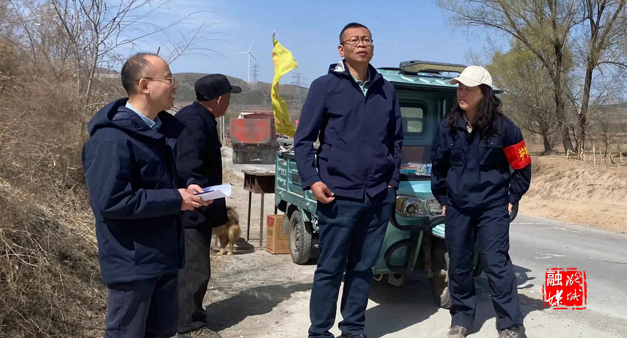 ★4月1日,微子镇相关负责人在郝家沟村查看道路沿线环境卫生整治情况。