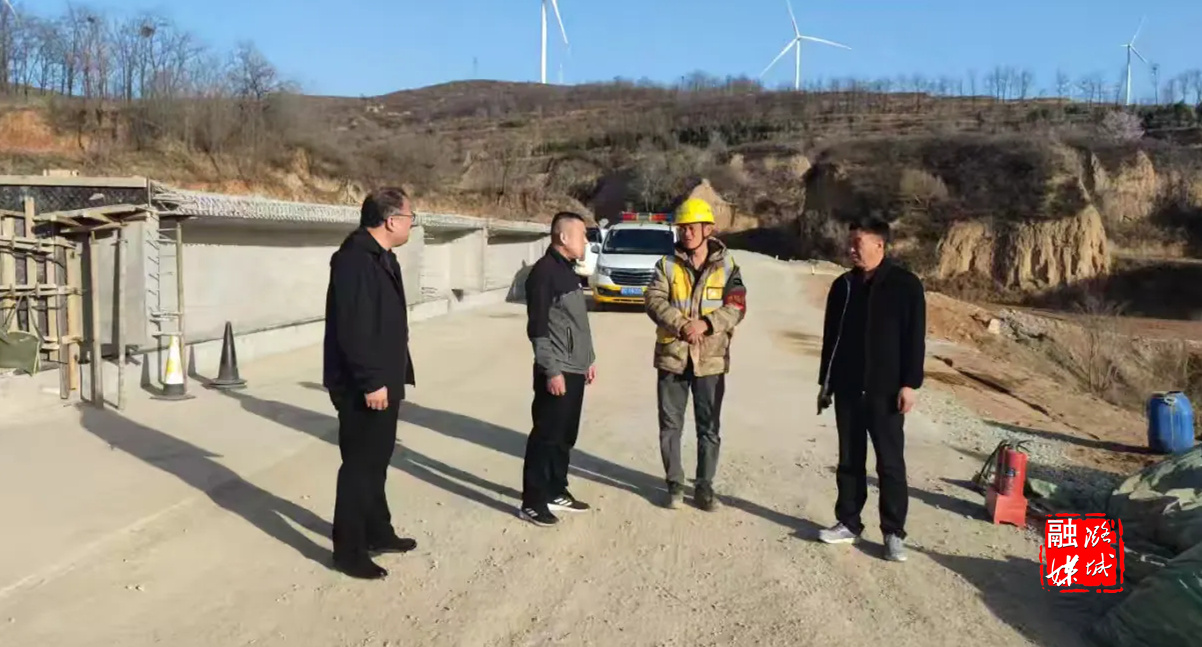 ▲黄牛蹄乡工作人员查看城乡供水一体化工程项目施工进度。