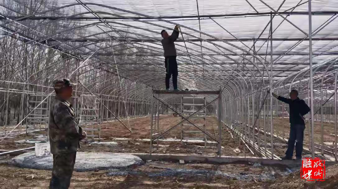 ★4月6日,微子镇相关负责人在东靳村查看香菇大棚二期工程建设情况。