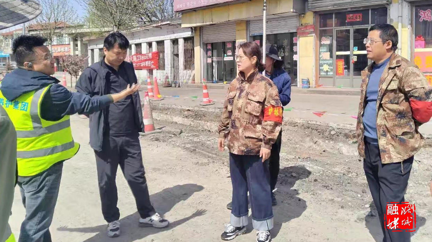 ▲微子镇相关负责人在微子村查看324省道改造工程施工情况。