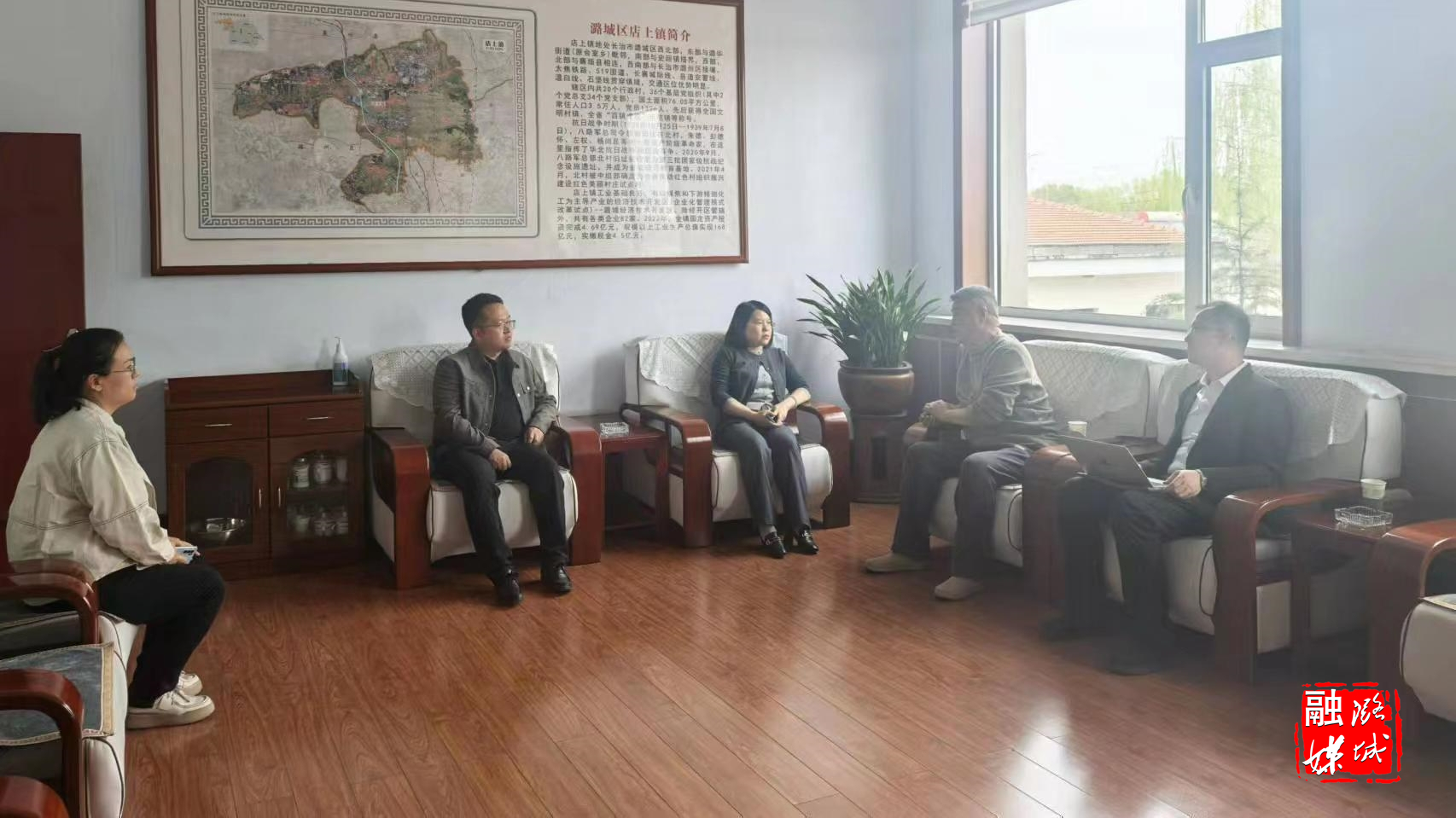▲店上镇负责人同运营意向方就店上镇农贸市场运营相关事宜进行沟通交流。