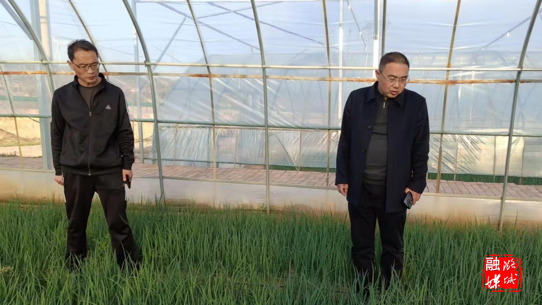 ▲潞华街道负责人到张家河村、中村查看大棚蔬菜种植情况。