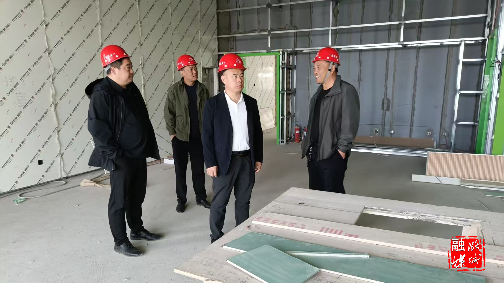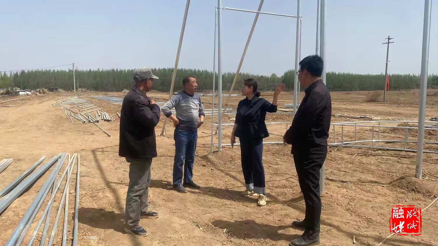 ▲微子镇相关负责人在西靳村查看伏牛山现代菌业项目施工情况。