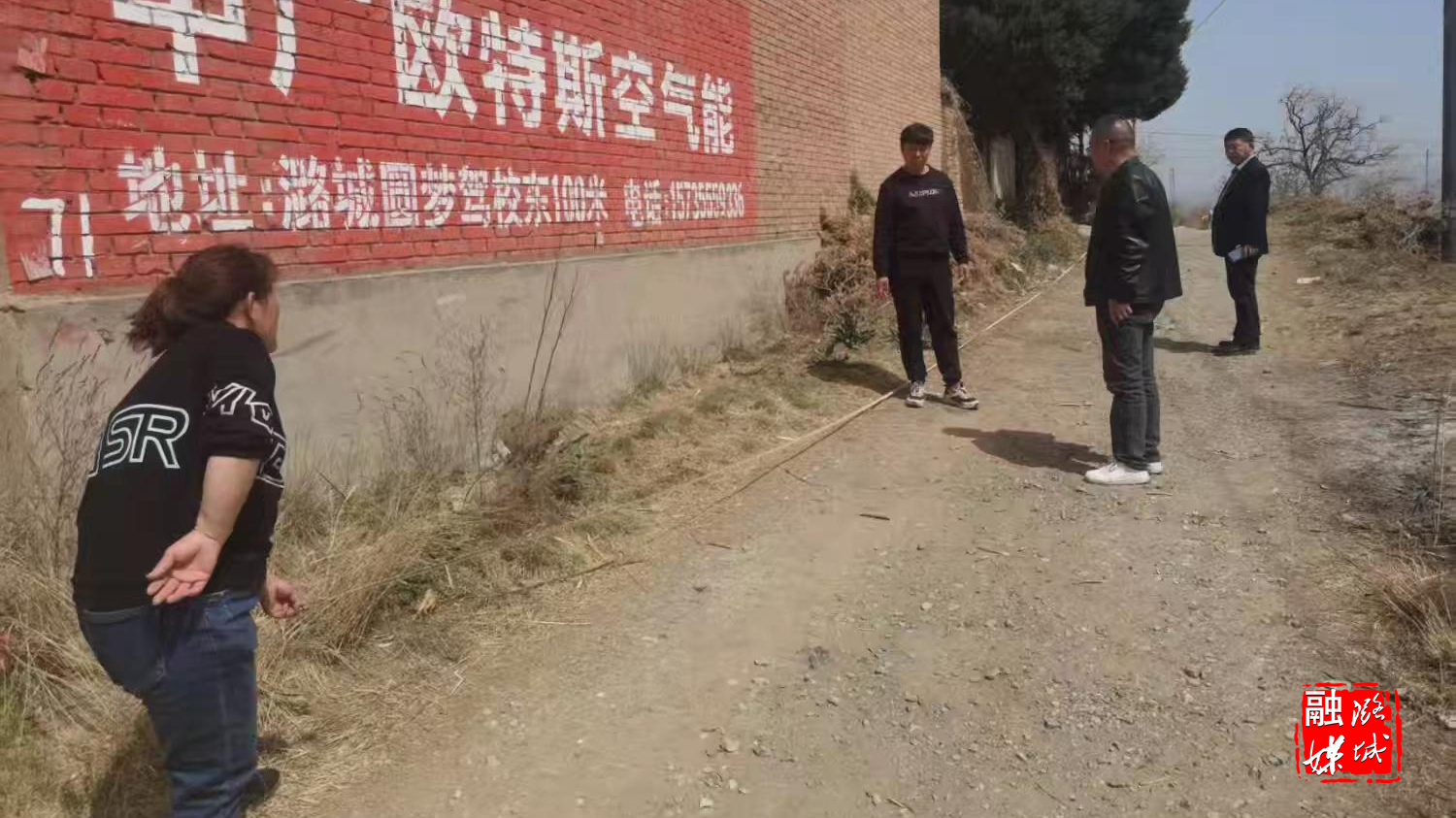 ▲黄牛蹄乡相关负责人到黄牛蹄村查看测量猪厂占地情况。
