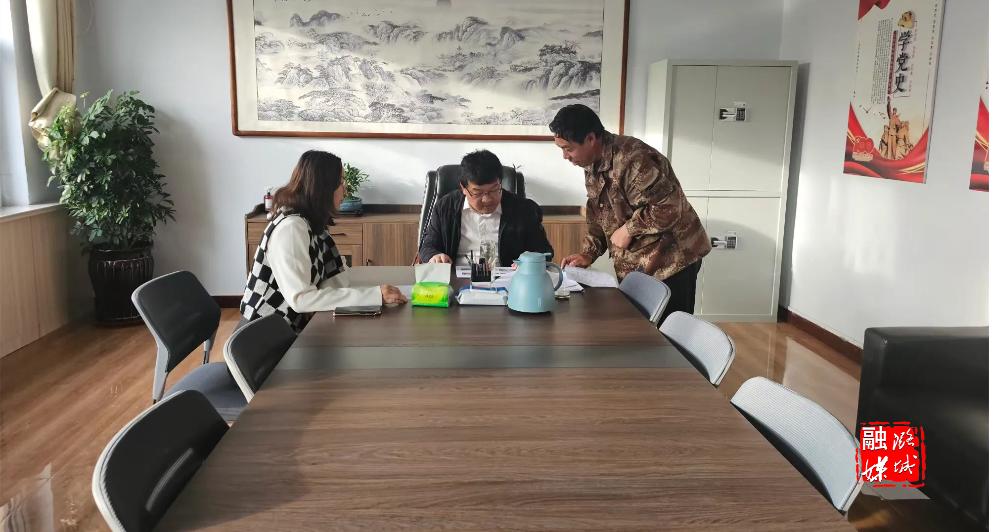 ★4月23日,辛安泉镇负责人同第三方就“千万工程”项目建设工作进行交流沟通。