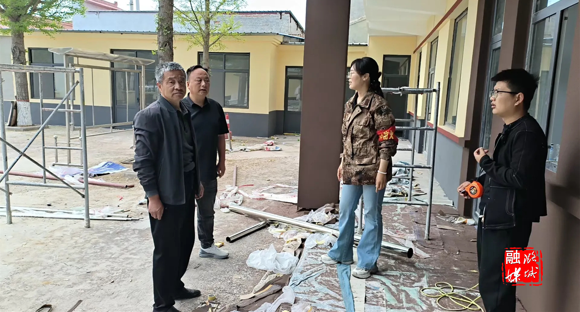 ★4月23日,成家川街道工作人员在黄池村查看党群服务中心改造工作。