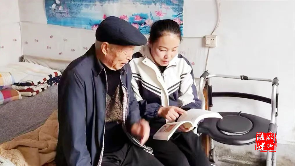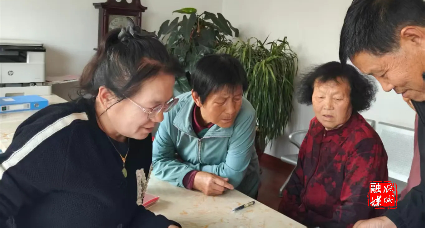 ▲店上镇石窟村工作人员帮助老年人完成养老保险资格认证。