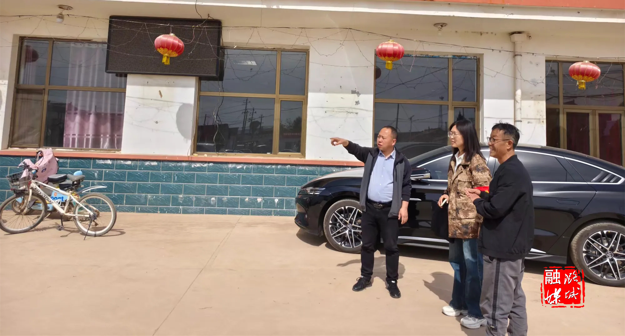 ▲成家川街道工作人员在东邑村查看党群服务中心提升整改工作。