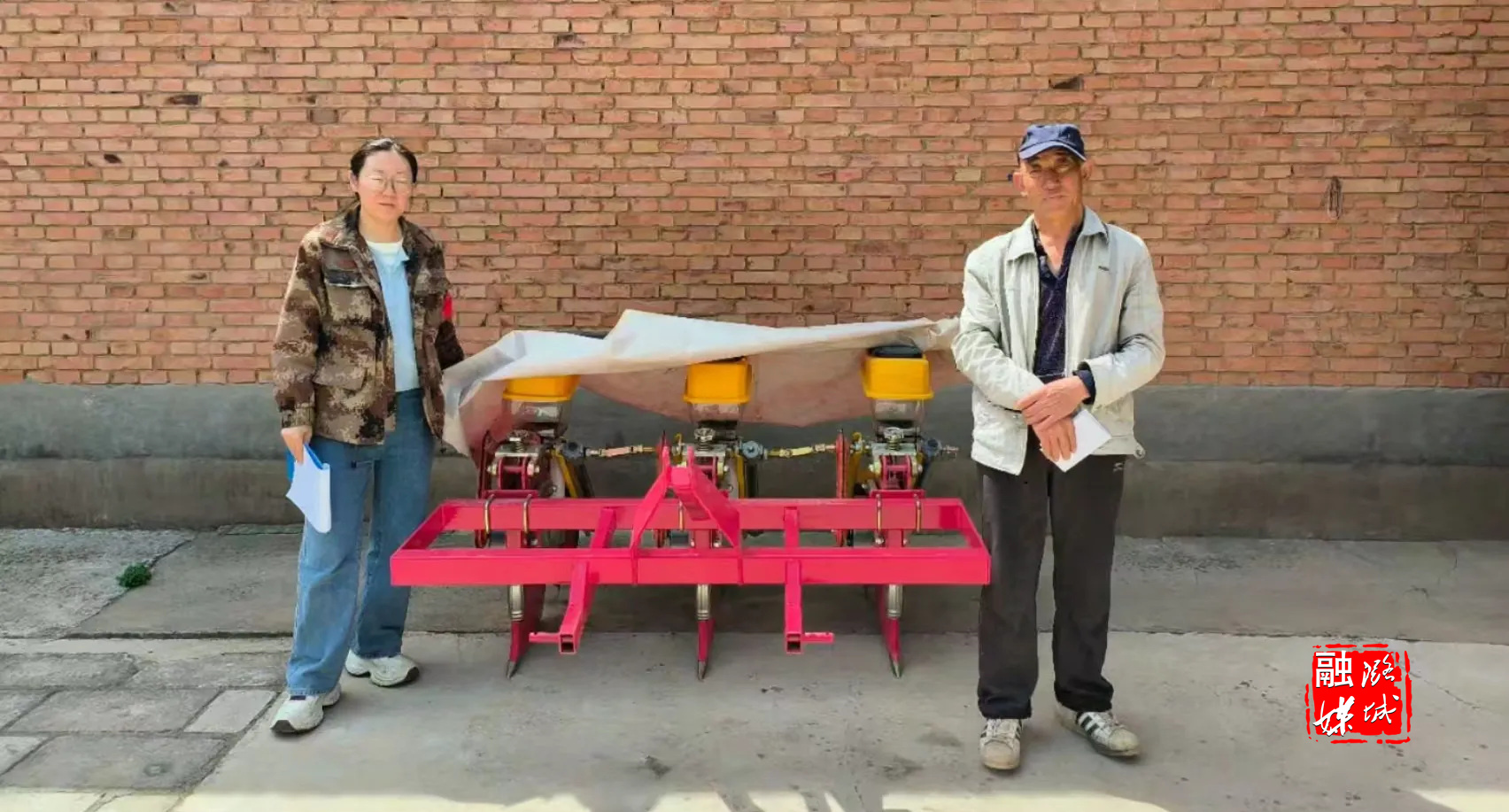 ▲辛安泉镇农机站工作人员在曹庄村、南马村就农机购置补贴进行现场核验。