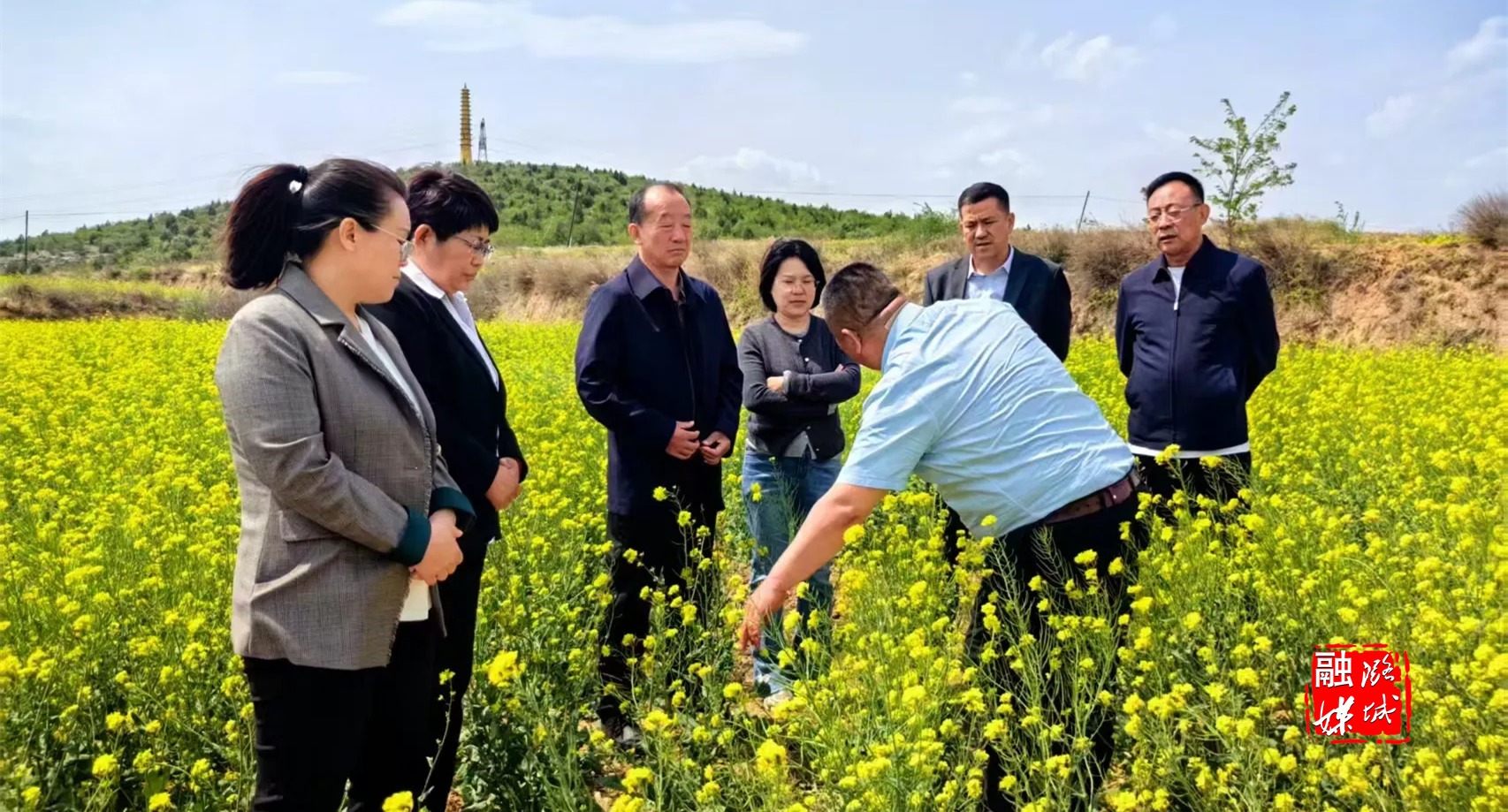 ★4月27日,店上镇负责人和店上镇人大代表到油菜花种植基地查看“一地两种”情况。