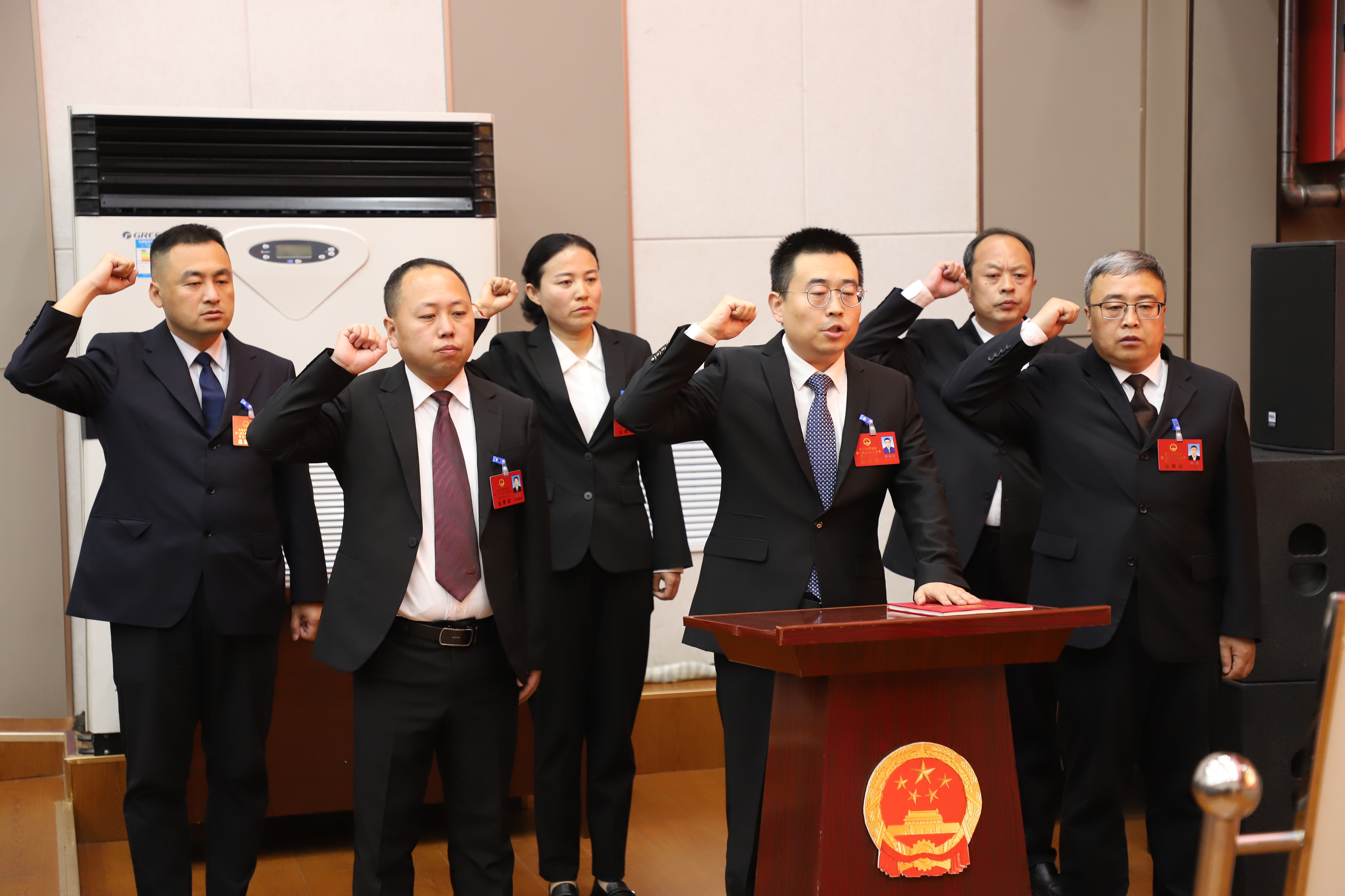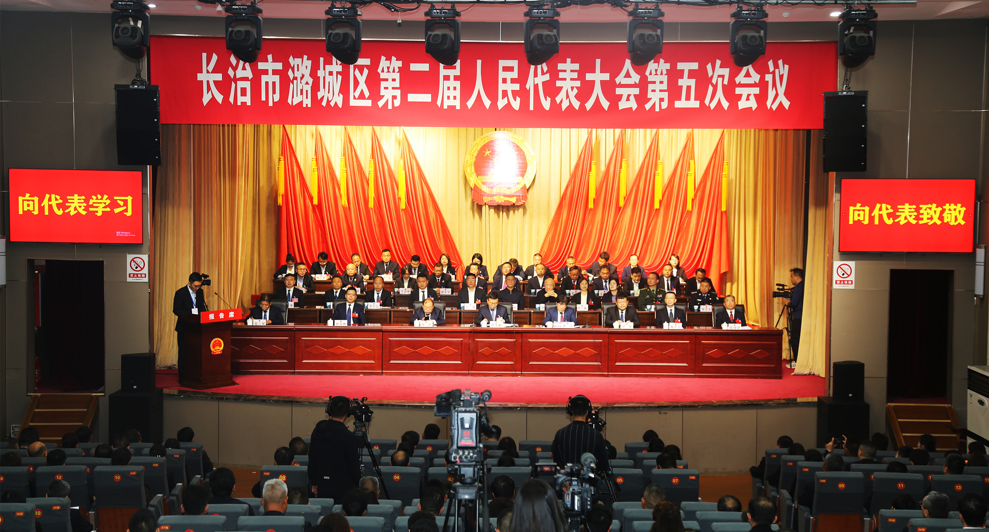 在热烈的掌声中,新当选的长治市潞城区监察委员会主任、长治市潞城区人民检察院检察长及长治市潞城区第二届人民代表大会常务委员会委员与代表见面。