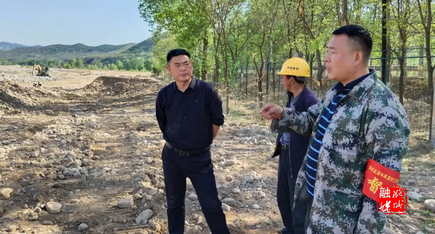 ▲辛安泉镇工作人员同施工方在浊漳河干流(潞城区段)生态缓冲带保护修复工程项目施工现场就建设事宜进行沟通交流。