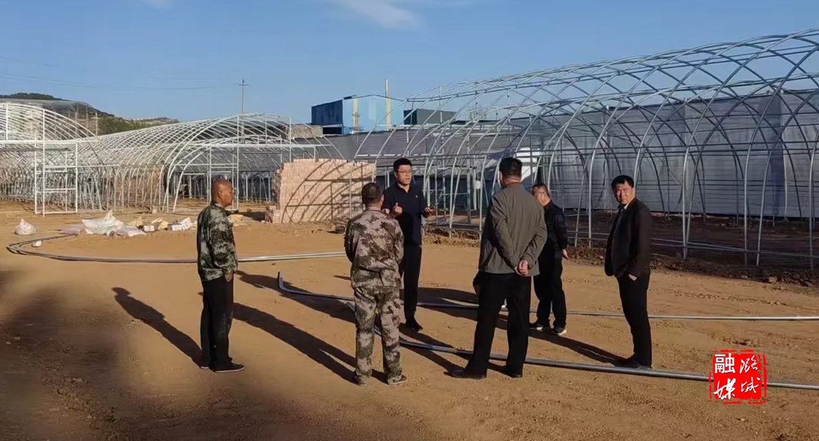 ▲史回镇相关负责人到食用菌出菇基地建设现场查看项目建设情况。