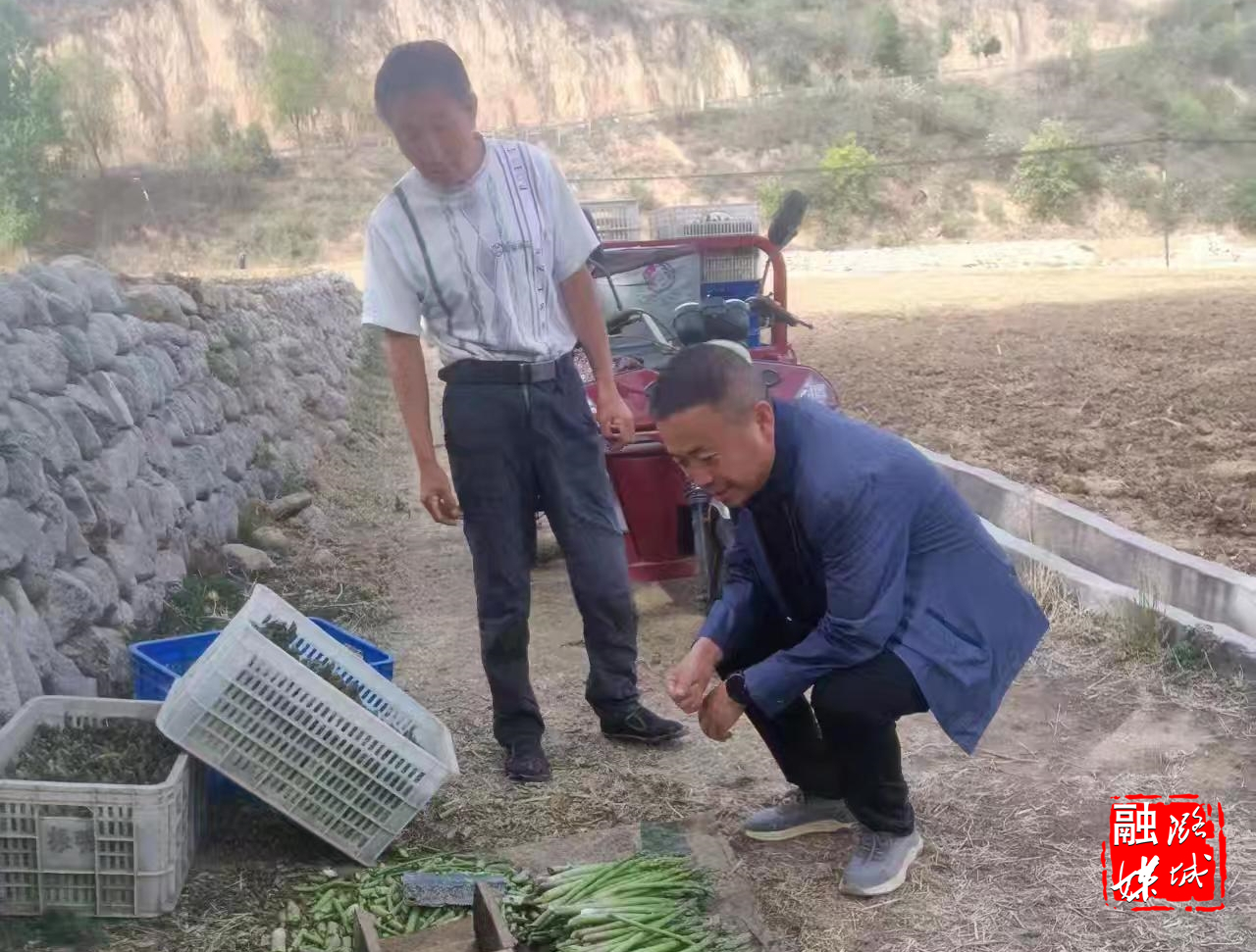 ▲黄牛蹄乡负责人到黄牛蹄村(庄头片区)查看芦笋种植情况。