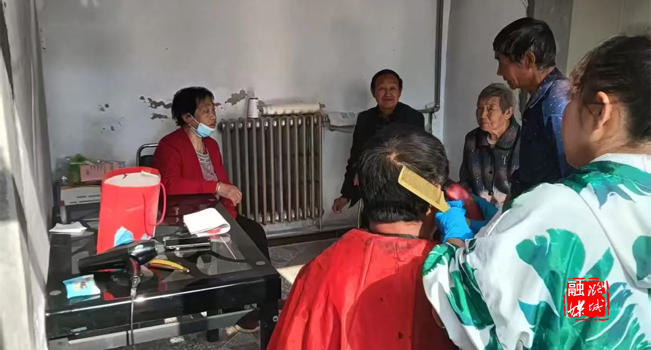 ▲史回镇小沟村组织开展“助老义剪”志愿服务活动。