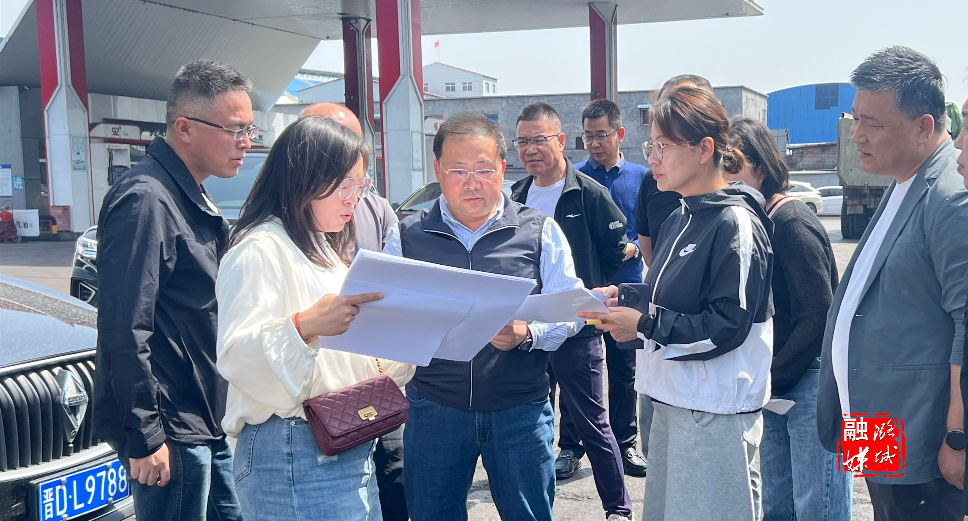 ▲店上镇相关负责人到博友建材、东明建材等地实地查看非煤矿山企业关闭退出和生态治理进展情况。