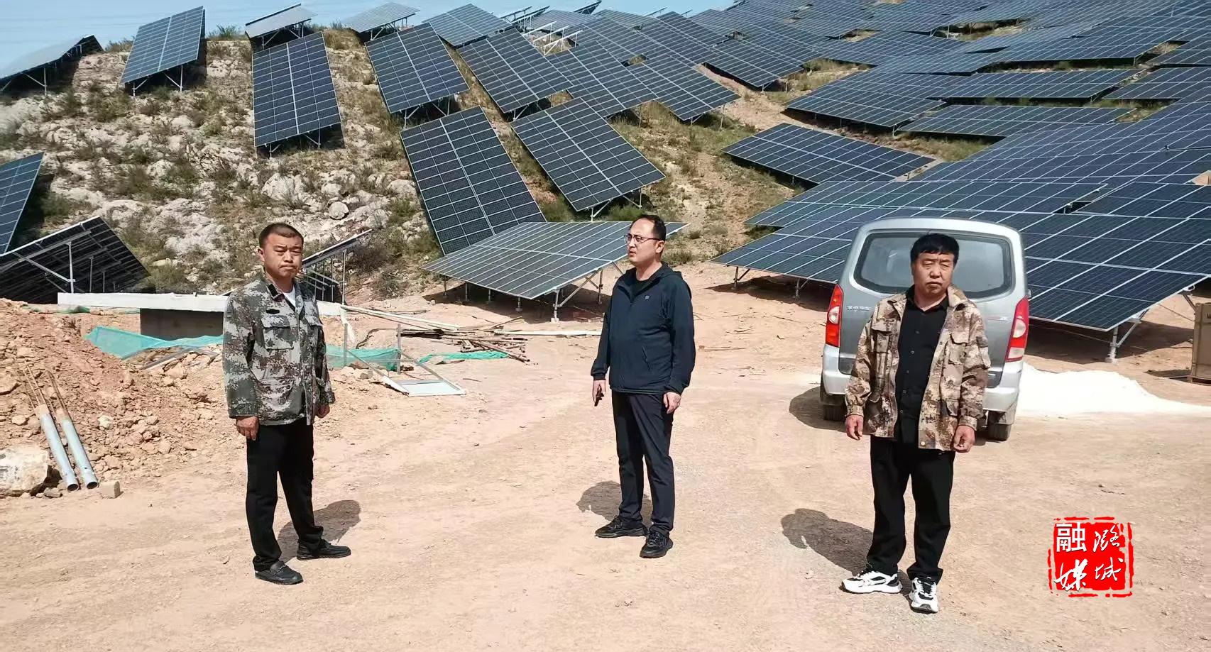 ▲成家川街道负责人到辖区光伏发电项目督查护林防火工作。