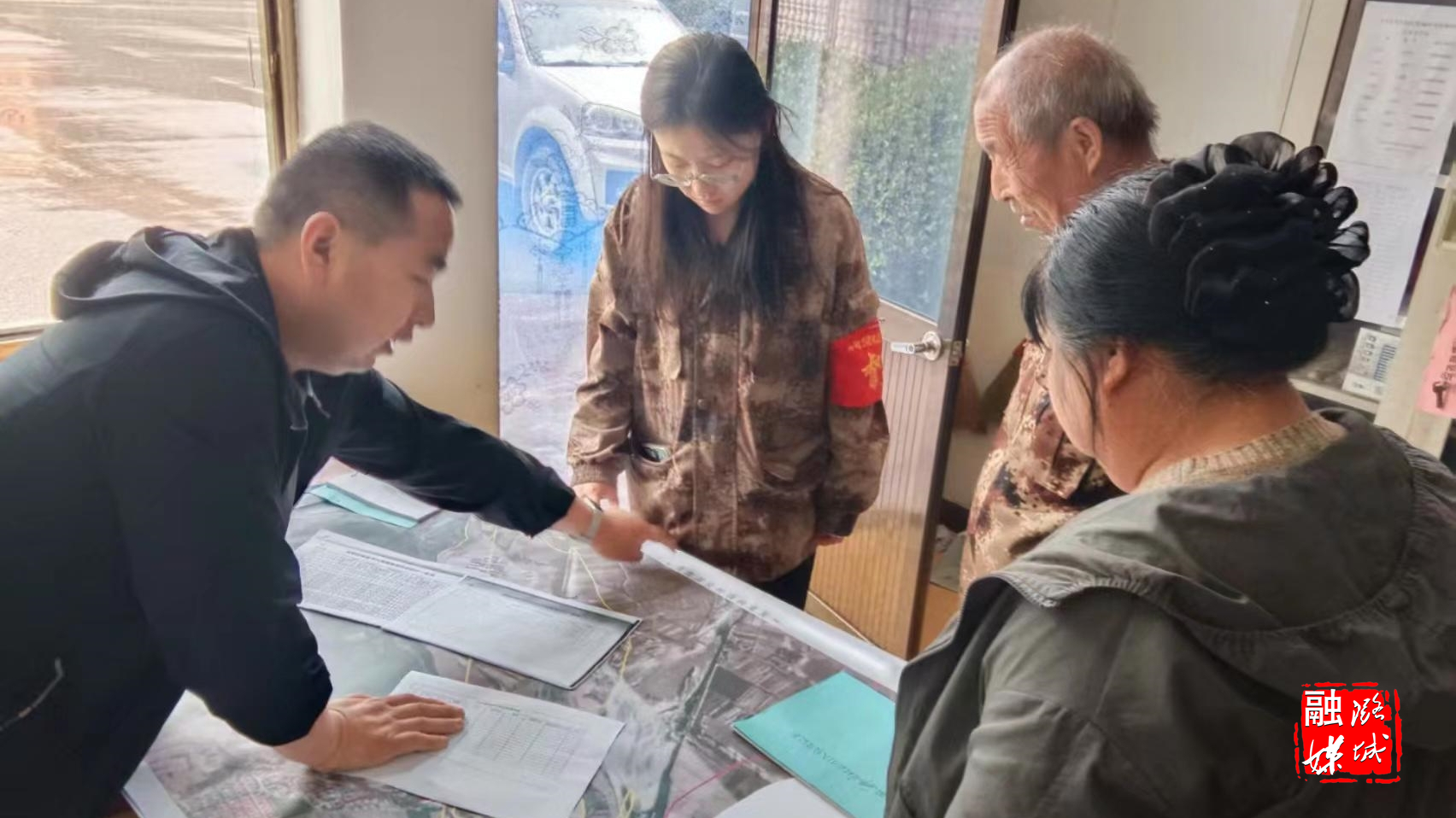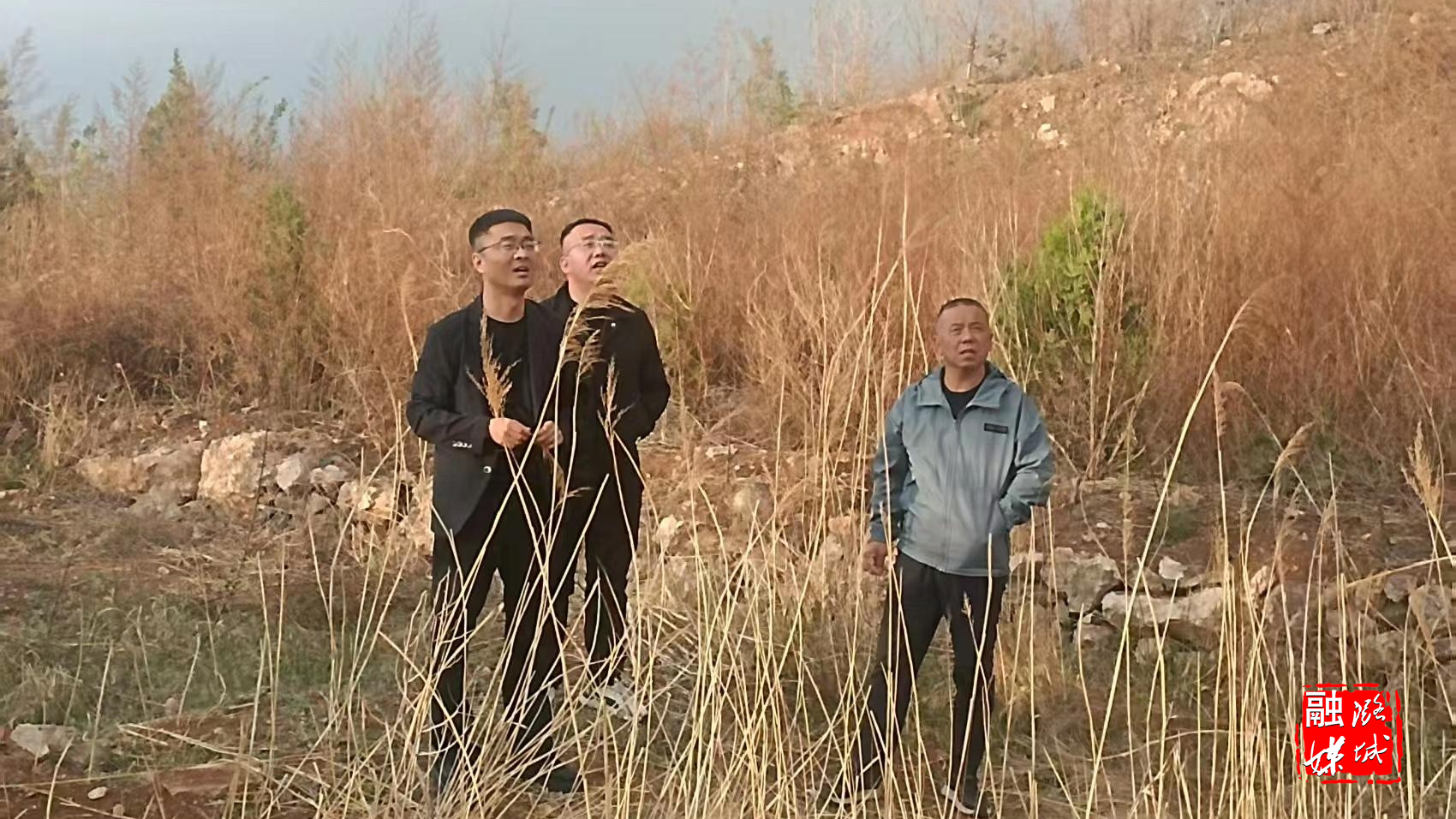 ▲黄牛蹄乡负责人同区自然资源局工作人员到上黄村、杨庄村查看项目建设用地情况。