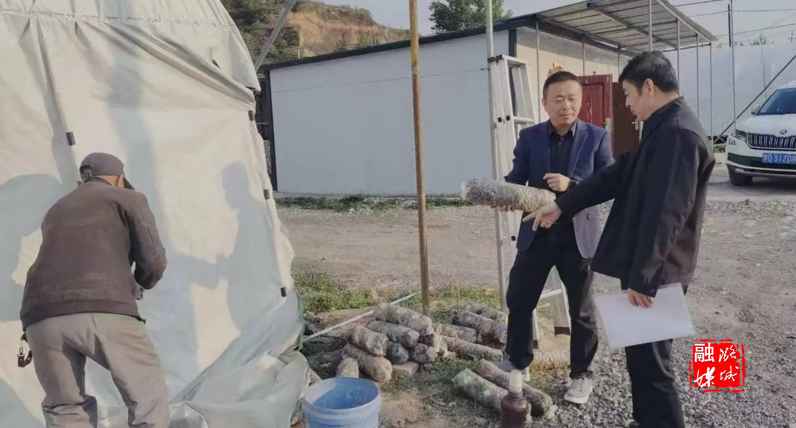 ★5月10日,黄牛蹄乡负责人到香菇基地查看香菇长势情况。