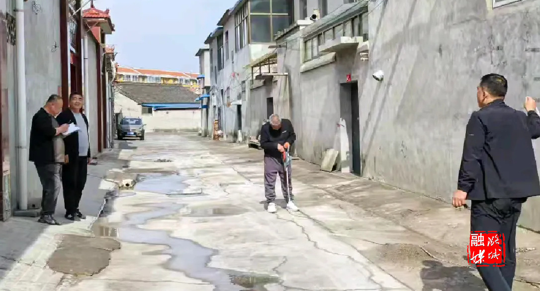 ▲微子镇微子村组织人员为取暖户测量供暖面积。