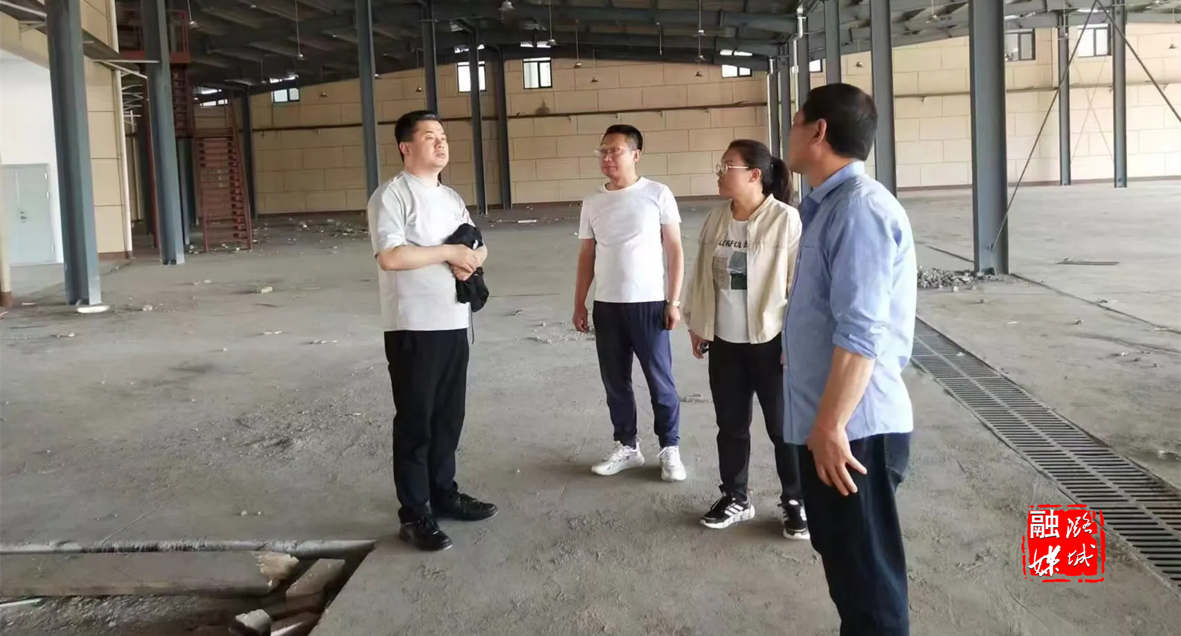 ▲店上镇工作人员与区供销合作社联合社理事会相关负责人就店上镇农贸市场相关事宜进行实地查看和沟通交流。