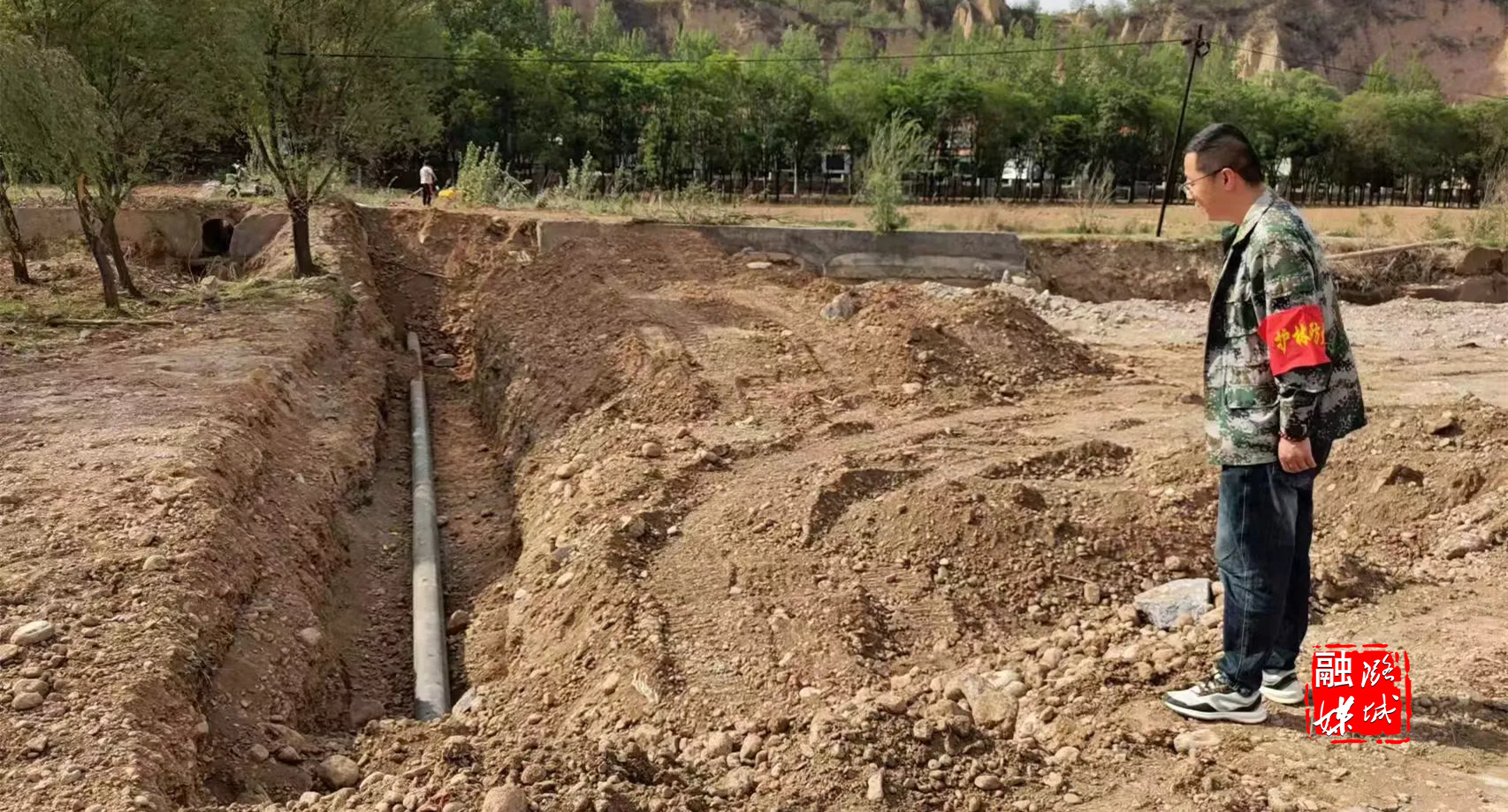 ▲黄牛蹄乡工作人员到下黄村查看下河片区供水主管道施工进度。