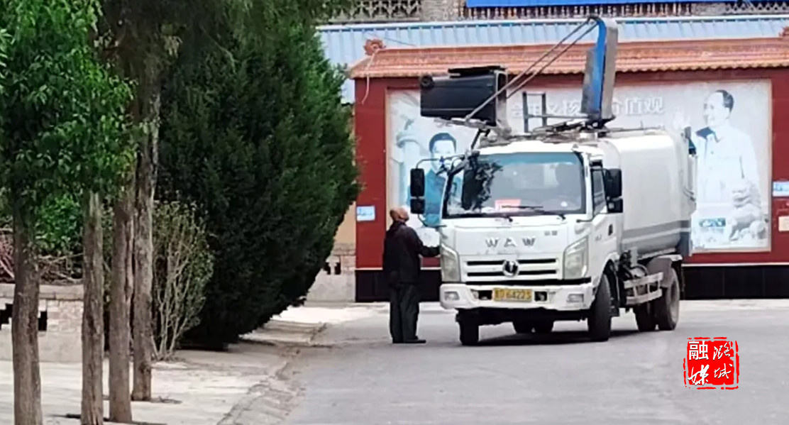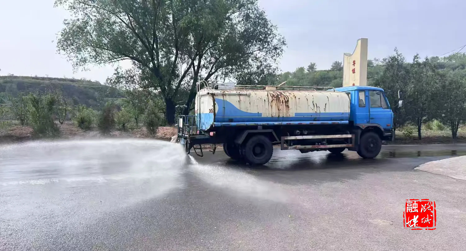 ▲微子镇漫流岭村组织人员和车辆清洗村内道路。