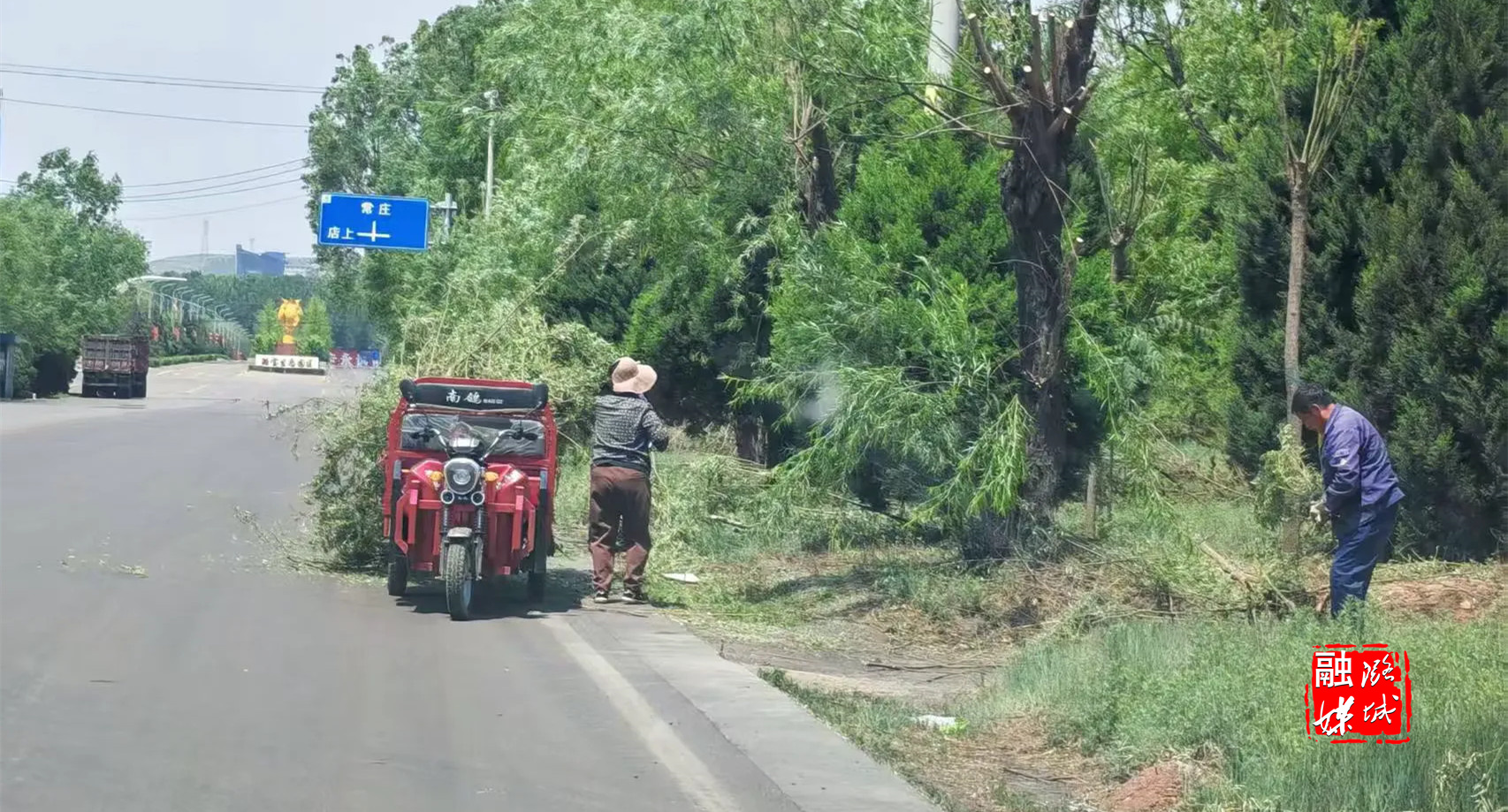 ▲店上镇组织环卫人员对辖区道路两侧进行清扫、洒水,营造镇区良好人居环境。
