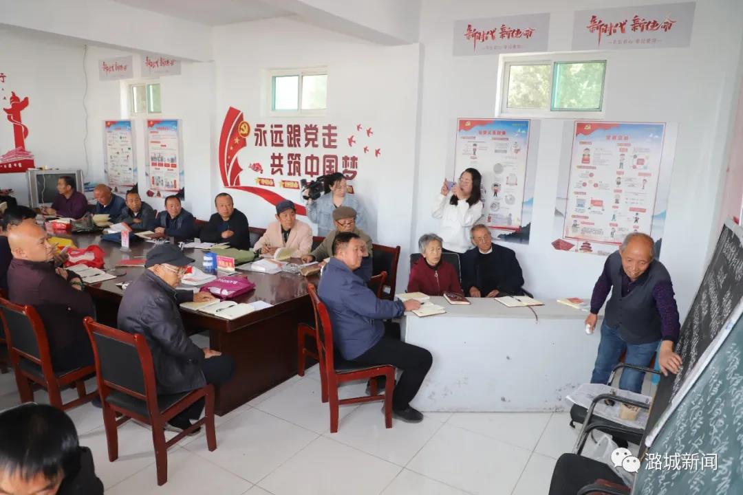 “中国共产党对中国革命道路的探索经历了艰难的历程。在艰辛的探索实践中,中国共产党坚持把马克思主义基本原理同中国革命具体实际相结合,团结带领中国人民找到了一条农村包围城市、武装夺取政权的正确革命道路·····”走进南舍村委,68岁的党员退休教师王生财重拾教鞭,用“一支粉笔+两块黑板”的传统教学模式,组织60岁以上和50年以上党龄的16名老党员学党史、写笔记、谈体会。每次集体学习,大家按时签到、准时上课,82岁的老党员李红喜,虽年岁已高,但依然坚持不懈,认真学习,他们用行动诠释了对党的忠诚与热爱。