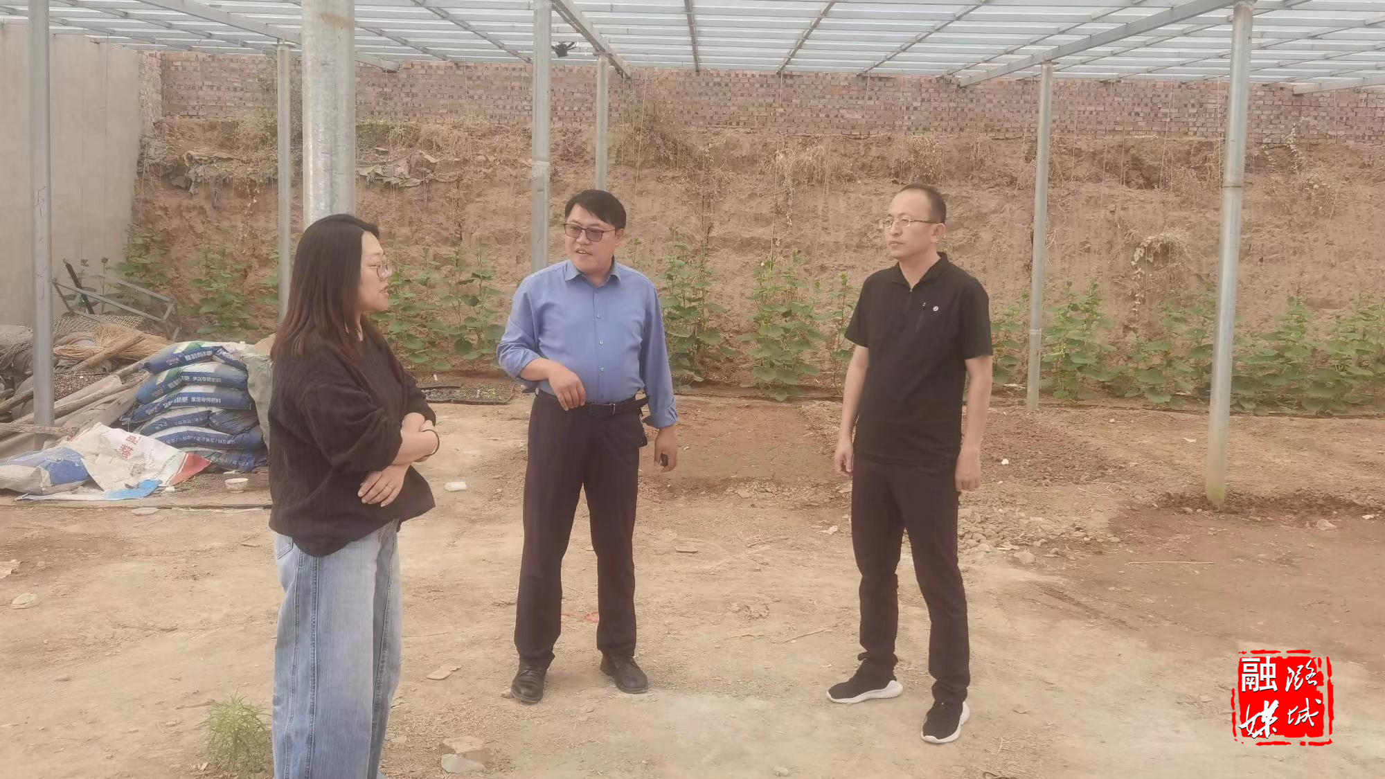 ▲潞华街道相关负责人到南庄村现场核查设施农用地备案建设情况。