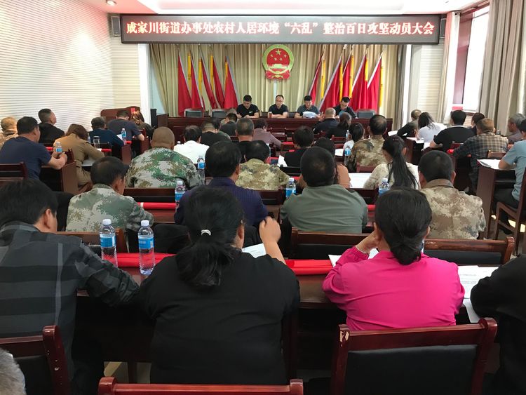 ▲5月21日,成家川街道召开两级干部大会暨农村人居环境“六乱”整治百日攻坚动员大会。