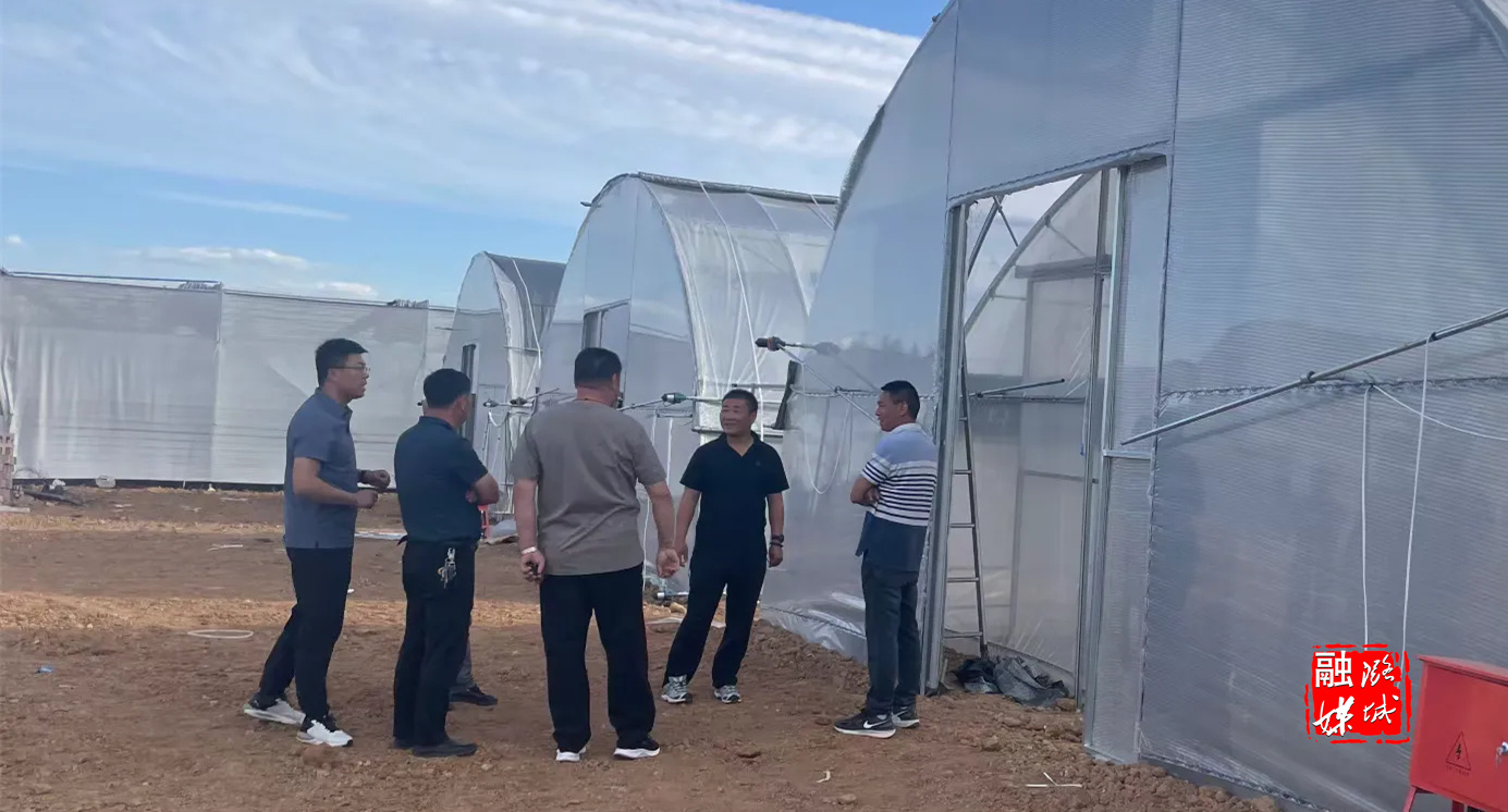 ▲史回镇相关负责人到宋家庄村实地查看出菇基地项目建设情况。