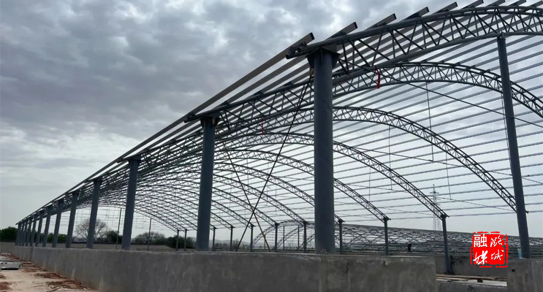 夏初之际,走进北村北岭庄西的富民肉牛养殖场项目现场,机械轰鸣声与金属焊接声交织成奋进的乐章。占地50亩的工地上,标准化钢结构牛舍已初具规模,工人们正在进行最后的顶棚安装和墙体抹灰工作。据了解,该项目于2024年1月开工建设,目前已完成总工程量的85%,跑出了乡村振兴产业建设的“加速度”。