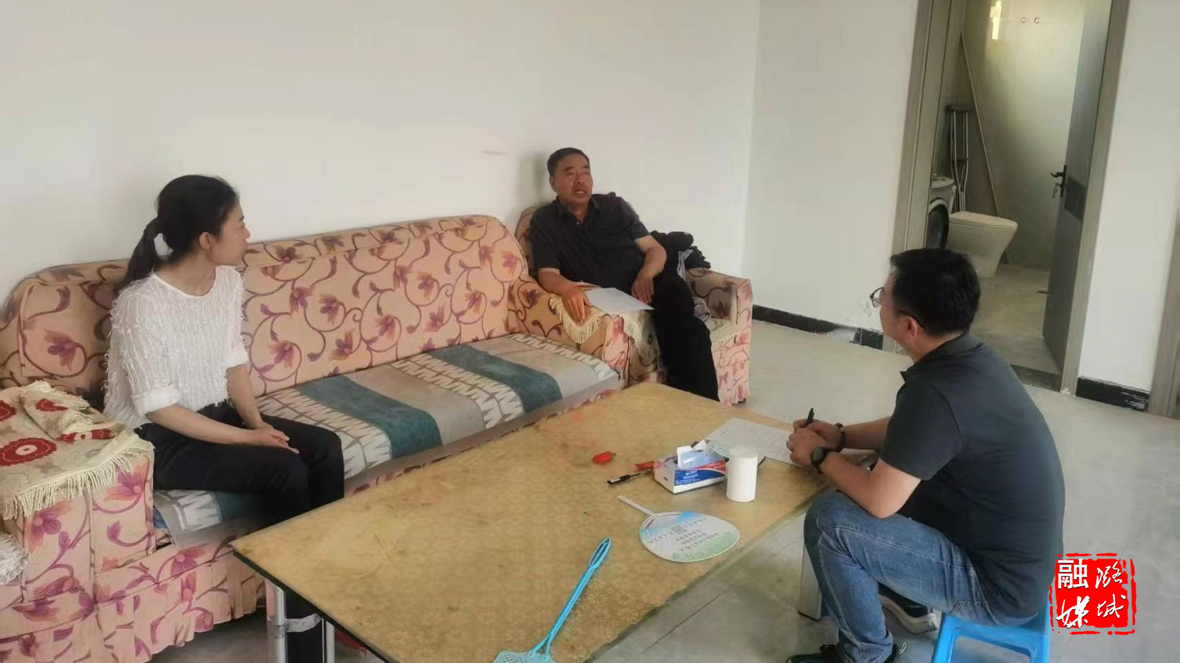 ▲黄牛蹄乡工作人员在辛安村推进项目建设进度。