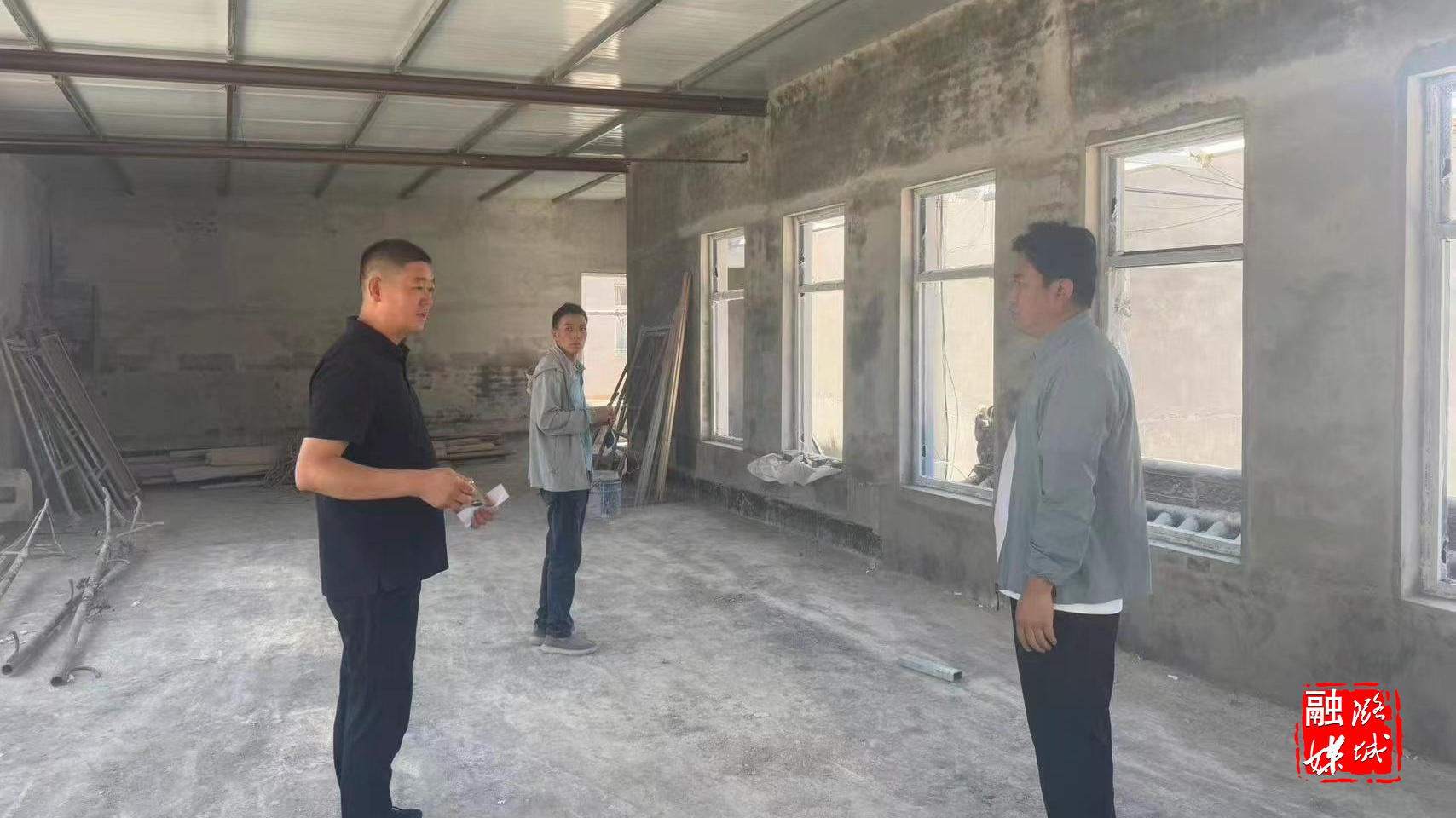 ▲翟店街道相关负责人到村推进集体经济项目建设工作。