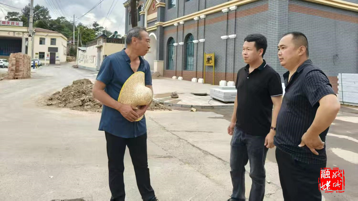 ★6月5日,辛安泉镇相关负责人在石梁村实地查看主街道改造提升工程施工进展。