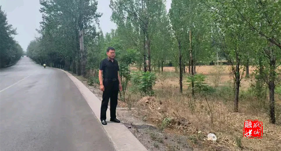 ▲辛安泉镇工作人员在各村查看道路沿线环境卫生整治情况。