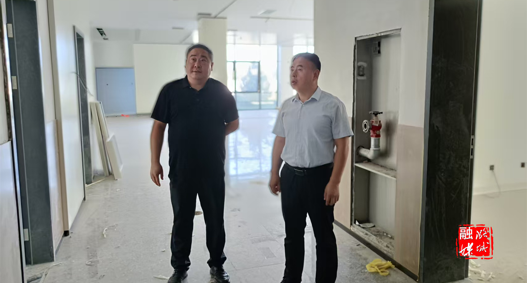 ▲翟店街道相关负责人与长治高新区翟店工业园事业服务中心负责人协调推进项目建设工作。