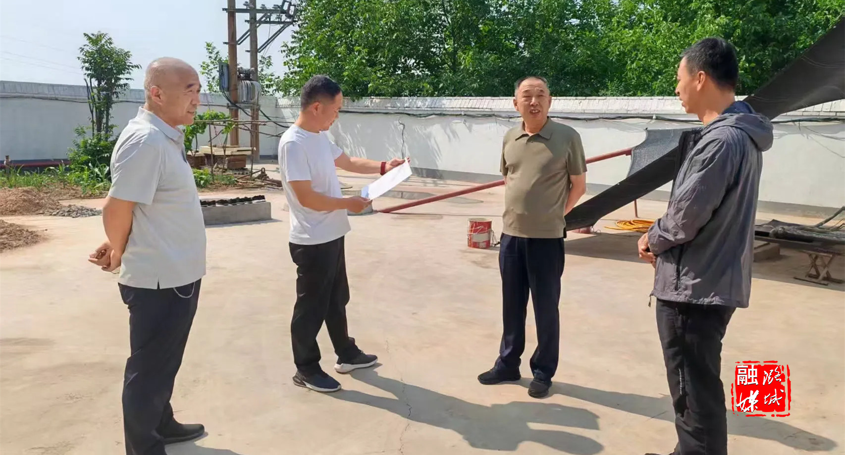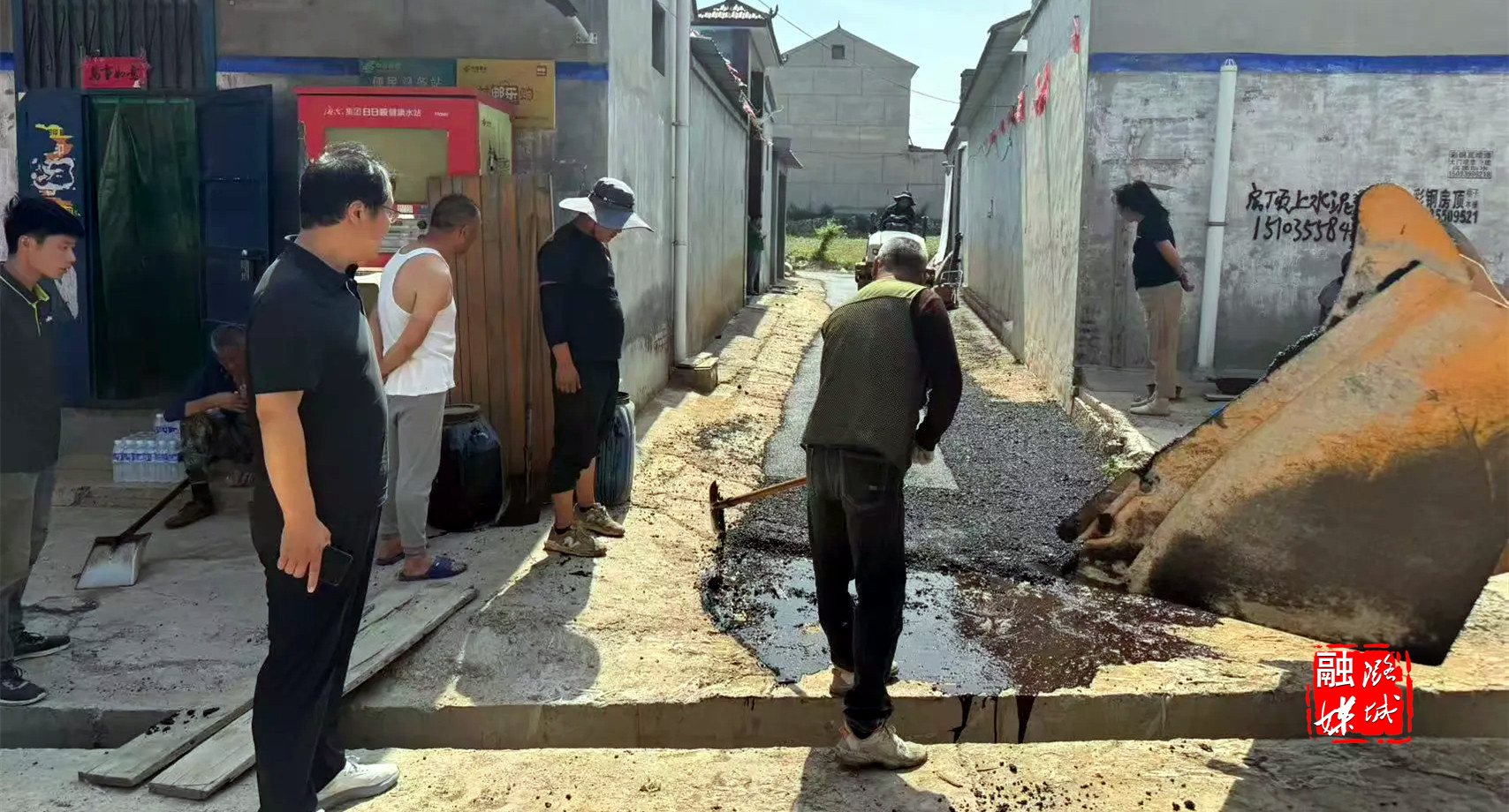 ★6月10日,史回镇工作人员到小沟村实地查看供水、集中供暖、雨污分流工程建设后的路面恢复工作进展情况。