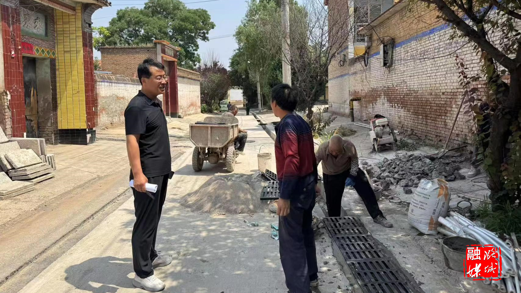 ★6月12日,史回镇工作人员到小沟村实地查看工程建设后的路面恢复工作进展情况。