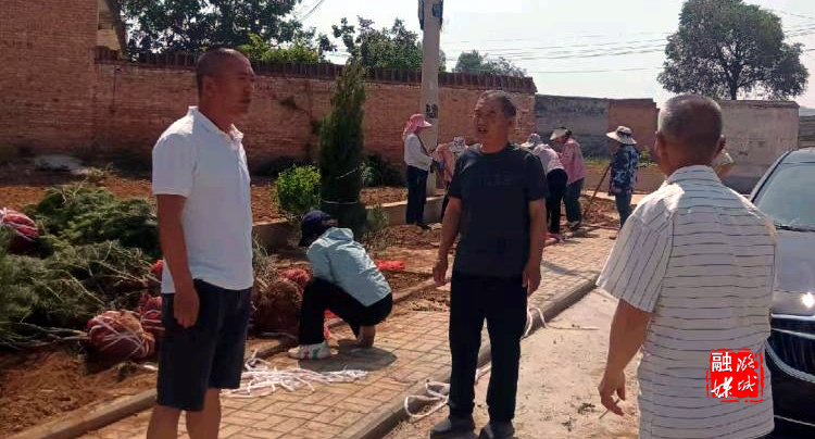 ▲微子镇相关负责人在东靳村指导村庄绿化工作。