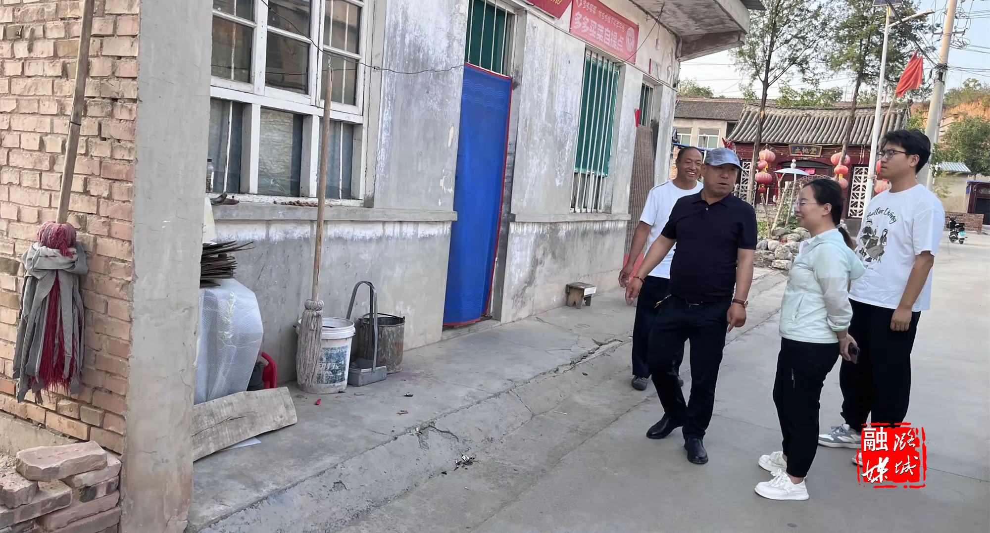 ▲潞华街道相关负责人到西贾村进企路沿线督查人居环境整治工作。