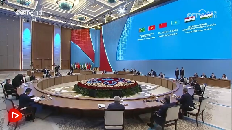 当地时间6月17日下午,第二届中国—中亚峰会在阿斯塔纳独立宫举行。哈萨克斯坦总统托卡耶夫主持会议。中国国家主席习近平、吉尔吉斯斯坦总统扎帕罗夫、塔吉克斯坦总统拉赫蒙、土库曼斯坦总统别尔德穆哈梅多夫、乌兹别克斯坦总统米尔济约耶夫出席。元首们在友好气氛中共同回顾西安峰会以来中国—中亚各领域合作成果,展望未来发展方向,一致决定弘扬“中国—中亚精神”,坚持永久睦邻友好,携手推动中国—中亚命运共同体建设不断取得新成就。