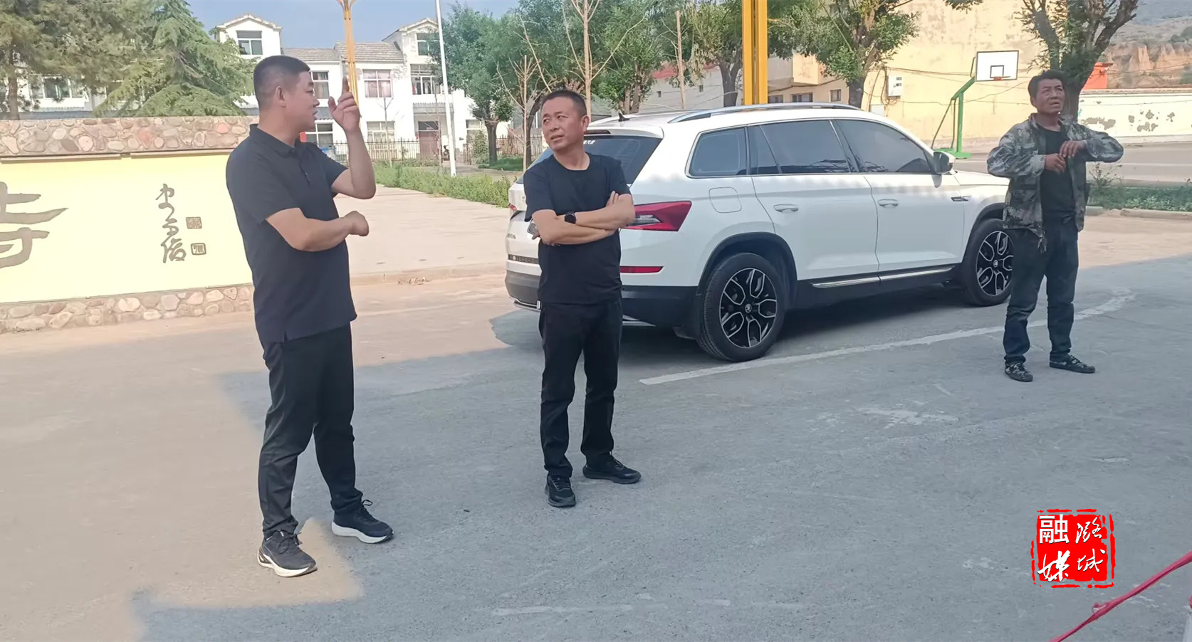▲辛安泉镇负责人同第三方公司就充电桩修建选址占地事宜进行沟通。