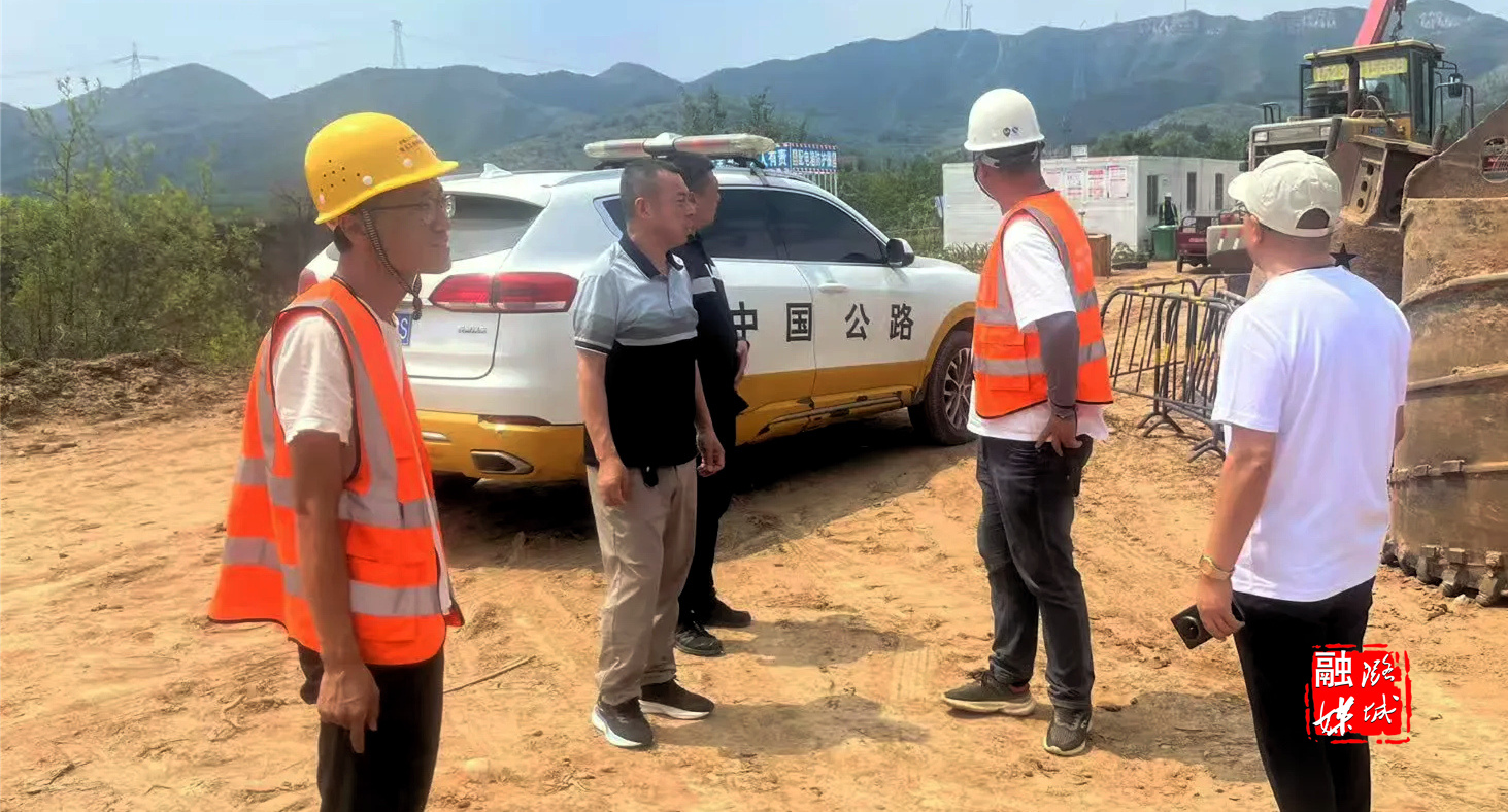 ▲区交通运输局负责人在店辛线施工现场督导检查施工质量、进度。