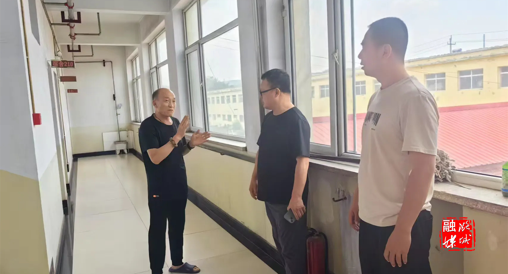 ▲店上镇工作人员及第三方公司到石窟村实地查看养老院建设情况。