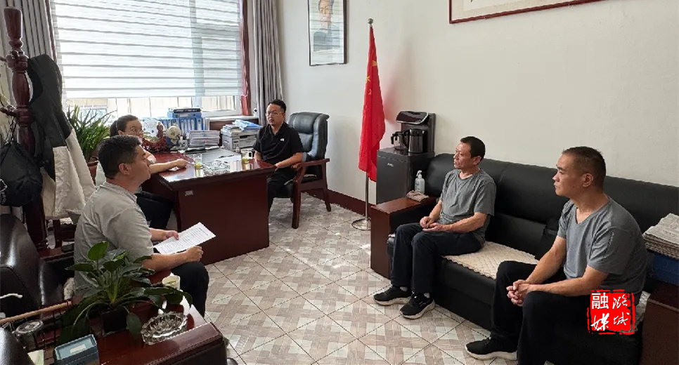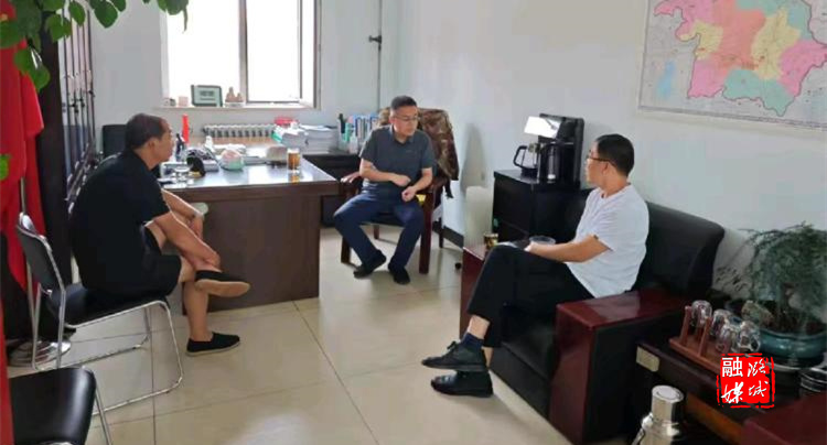 ▲微子镇负责人同旭辰矿业负责人就推进飞地经济项目进展情况进行座谈。