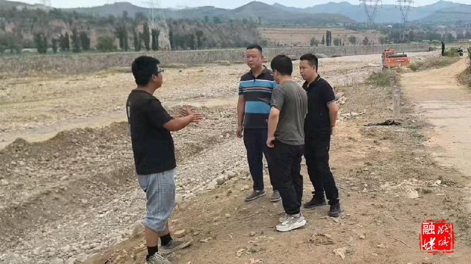▲辛安泉镇相关负责人同区自然资源局工作人员就浊漳河干流(潞城区段)生态缓冲带保护修复工程占地事宜进行现场勘测。