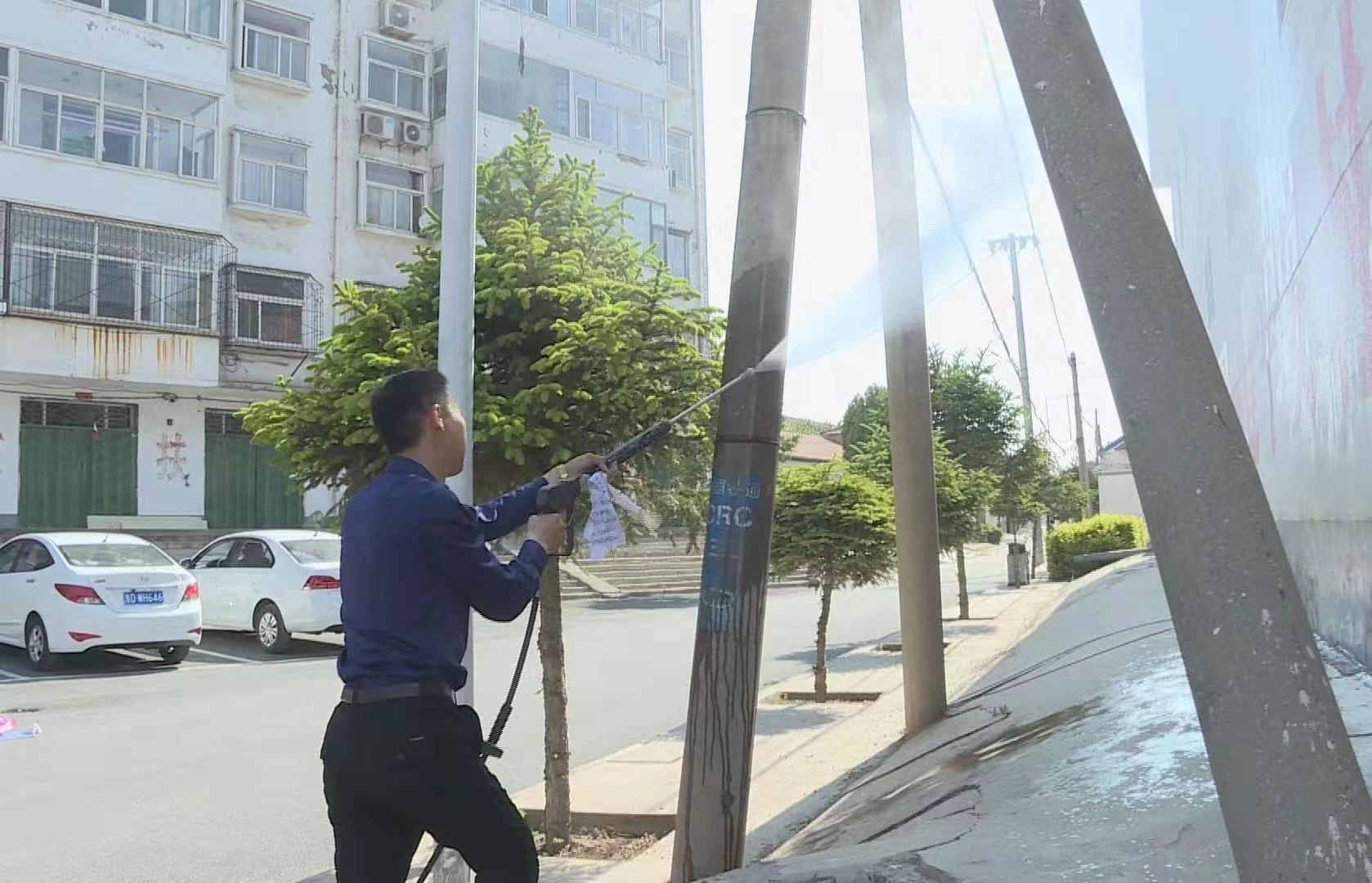 走进潞华街道北庄村,工作人员正在用喷枪清理街边的小广告,铲除道路两旁杂草,清扫沿街浮灰,为村民营造干净整洁的街道环境。